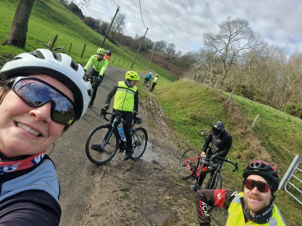 Après un changement de région, Marie s’installe en Normandie, où elle intègre un groupe de femmes passionnées de vélo. Cette rencontre joue un rôle déterminant dans son évolution. Rouler régulièrement en groupe lui permet de gagner en confiance, de structurer sa pratique et de se fixer de nouveaux objectifs.