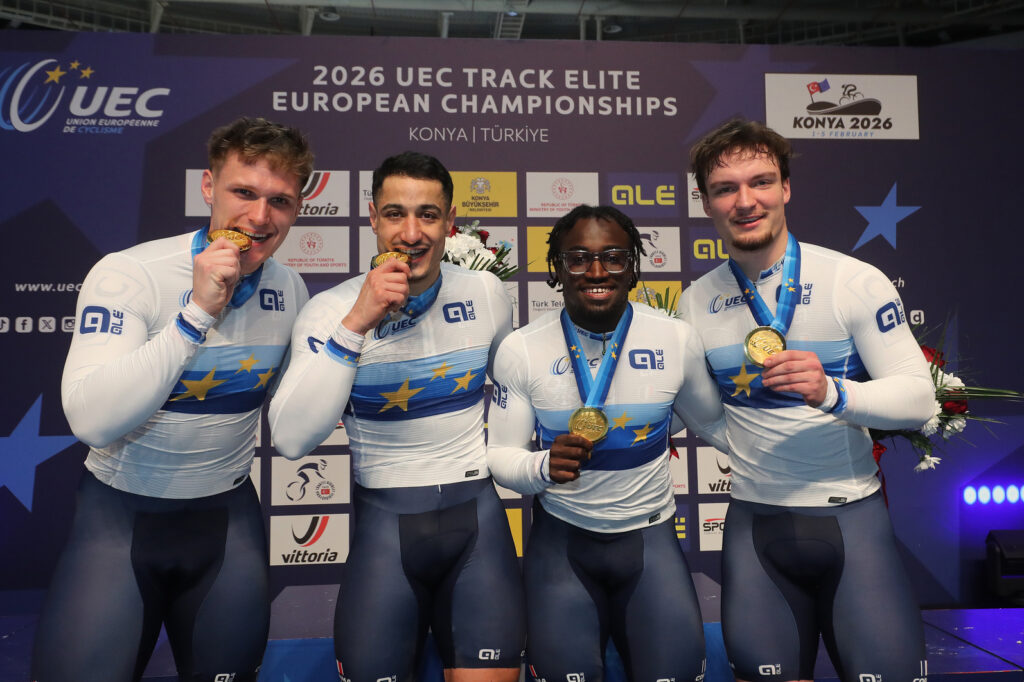 Les championnats d’Europe UEC sur piste se sont tenus la semaine dernière à Konya en Turquie, sur une piste manifestement rapide, car de nombreux records sont tombés, dont 7 records de France. Les athlètes français ont décroché 6 médailles, dont 2 titres : un pour la vitesse par équipe, et l’autre sur le KM féminin, en la personne d’une Mathilde Gros qui revient en verve.